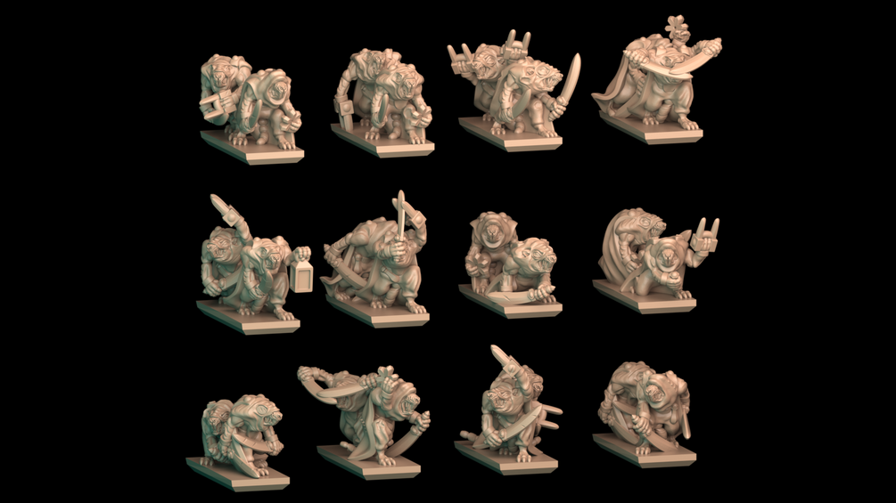 You get the stl-files for a complete unit of "Rat Assassins".