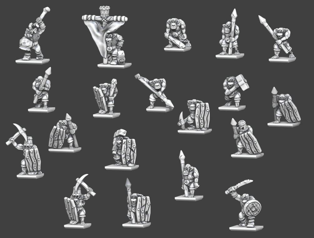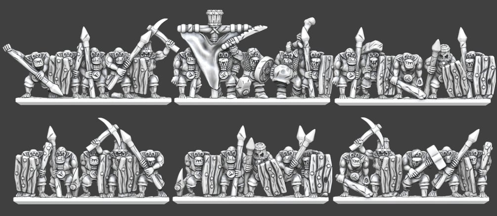 You get the stl-files for a complete unit of Magma Dwarf Slave Orcs.