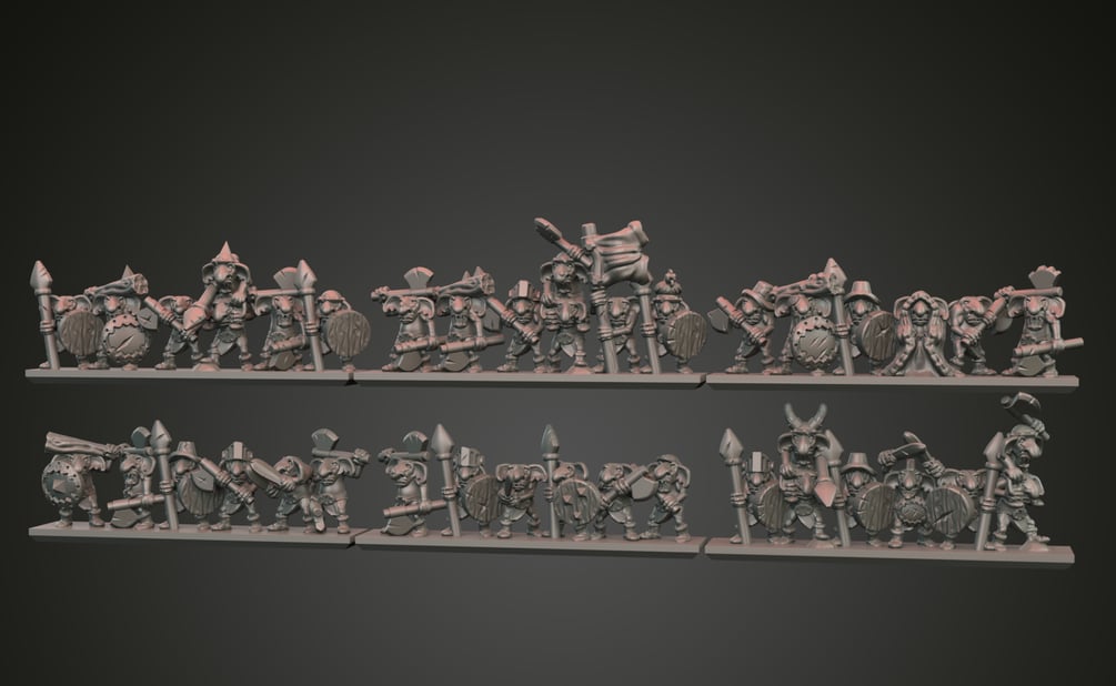 You get the stl-files for a complete unit of "Gnoblars".